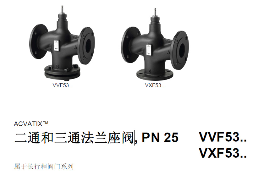 二通閥VVF43..可用于液體和蒸汽,但介質不同,安裝方向不同;三通閥VXF43..只能用于液體,可用于合流或分流。