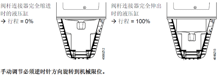 閥桿連接器完全伸出時(shí)的液壓缸行程 = 100%
